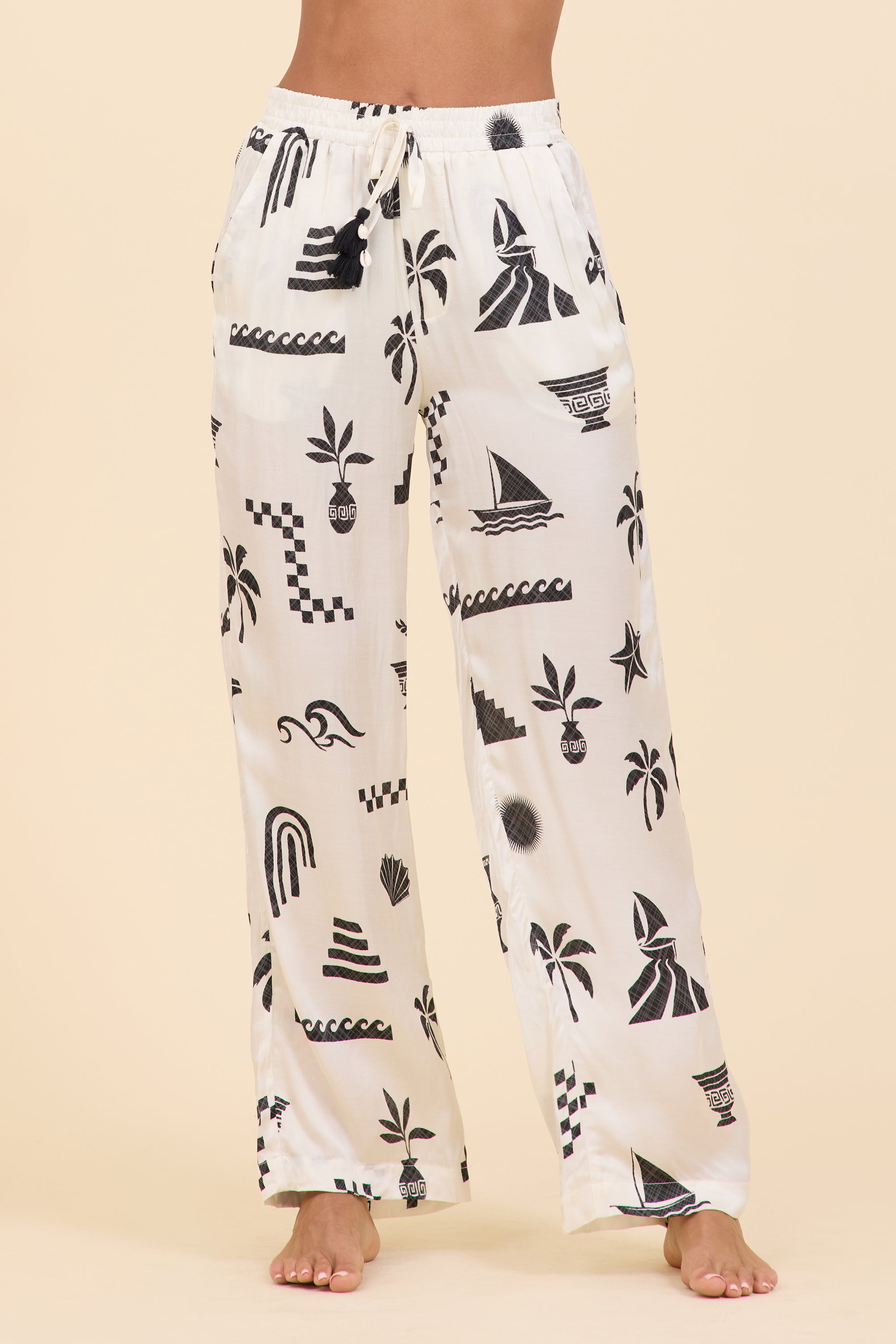 The Beach Vibe Printed Satin Wide Leg Pant Features: