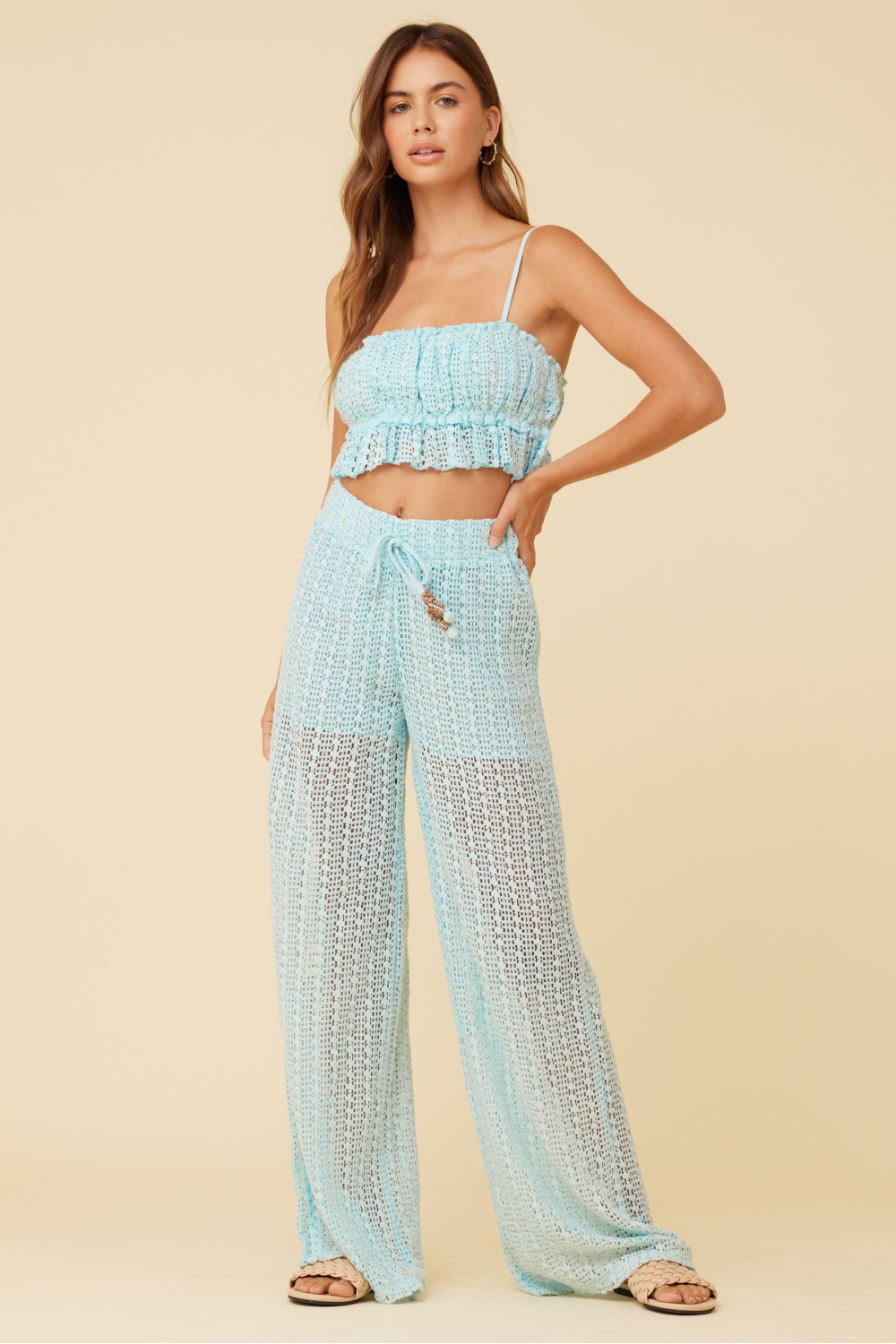 Embrace effortless beach vibes with the Tropical Blue Vertical Stripe Crochet Surplice Top. This cropped top features adjustable spaghetti straps and delicate ruffle accents, adding a feminine touch to your summer wardrobe. The striped crochet details create a breezy, textured look perfect for sunny days by the shore or casual outings. Lightweight and flattering, it’s designed to keep you comfortable and stylish all day long.