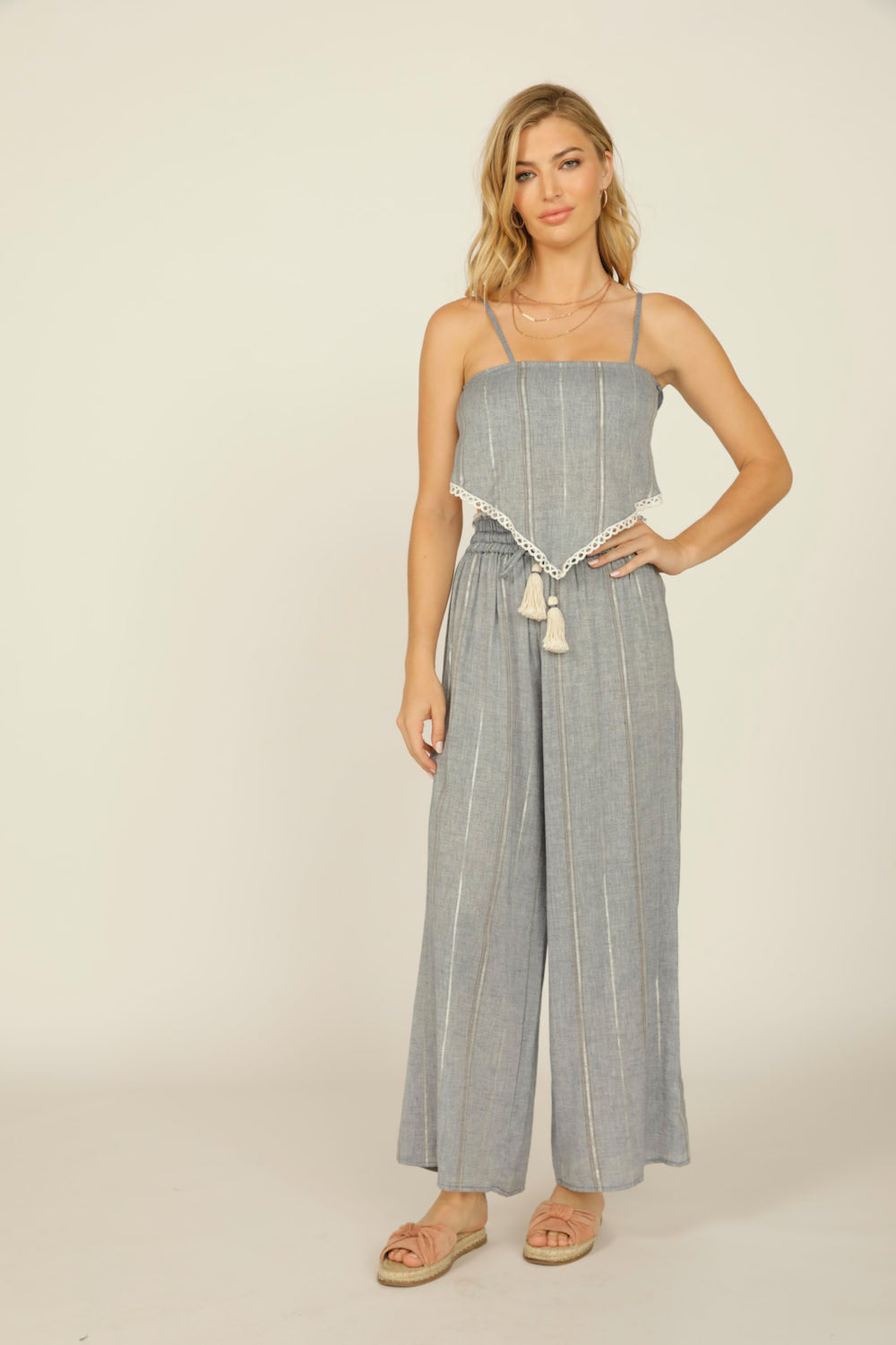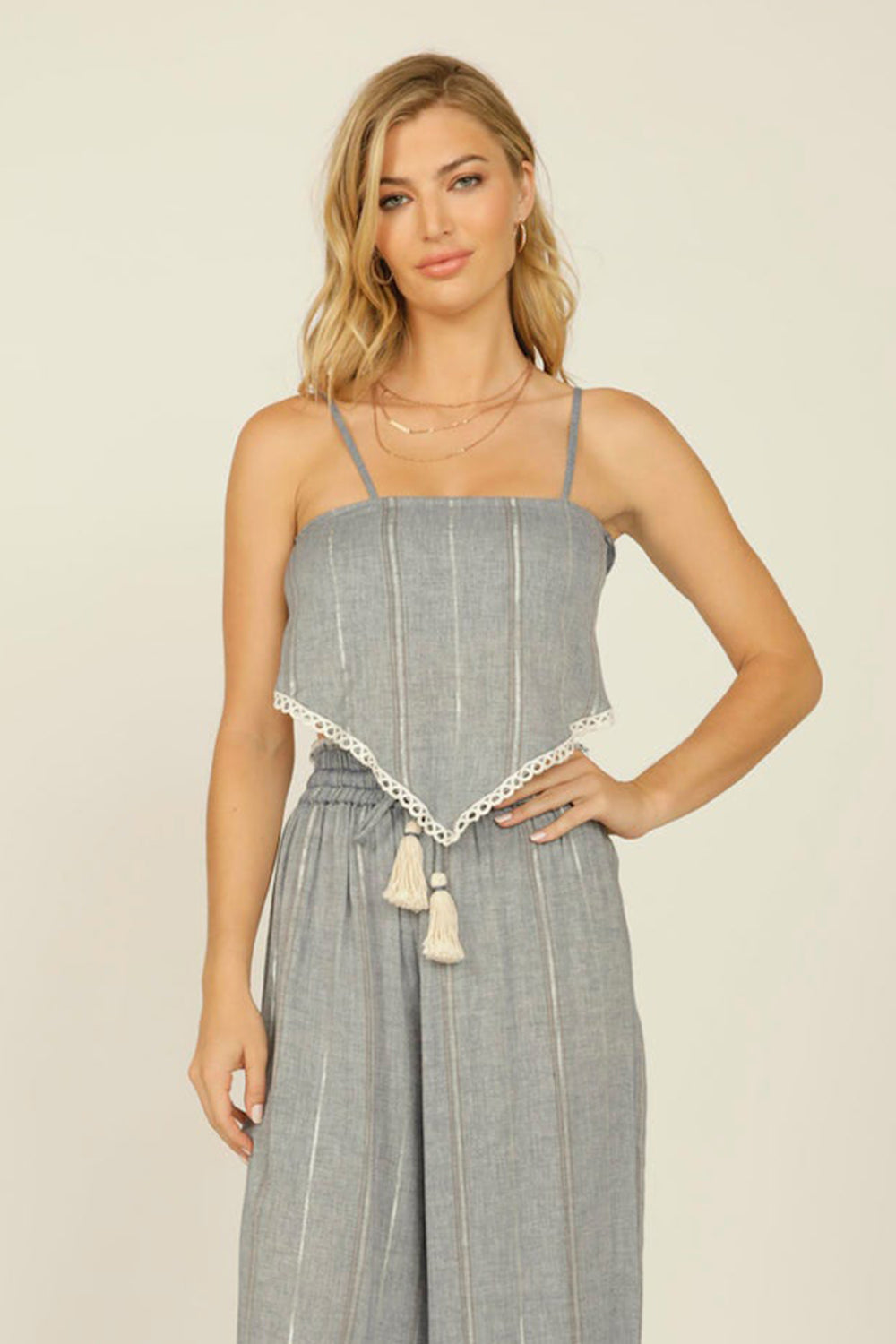 The Denim/Gold Stripe Handkerchief Top combines casual comfort with a touch of shimmer. Made from soft cotton with subtle metallic accents, its handkerchief silhouette and tie-back detail create a relaxed, feminine look perfect for beach days or laid-back outings. Easy to care for with a cold hand wash, this top adds effortless style to your warm-weather wardrobe.